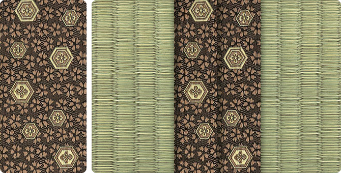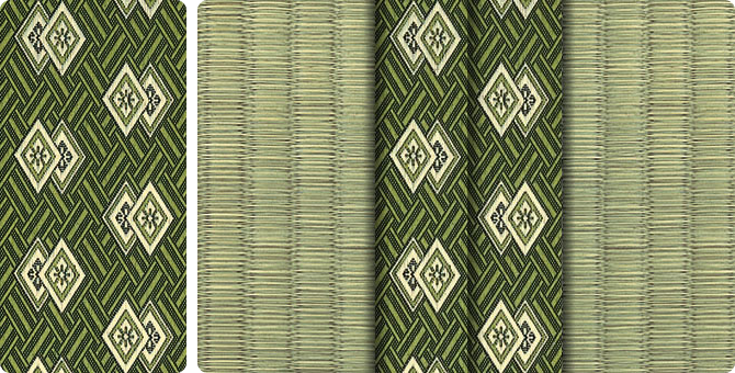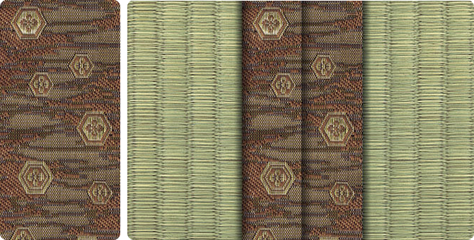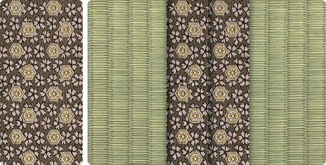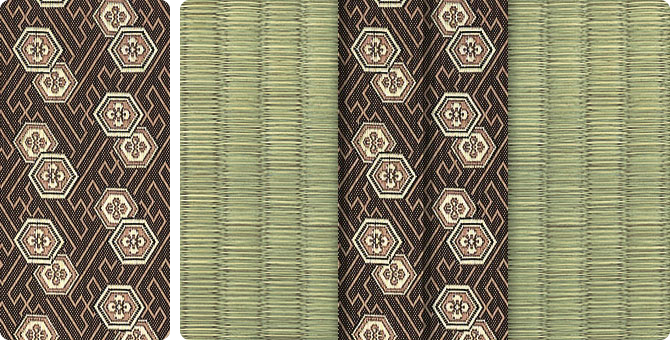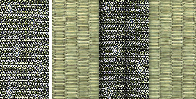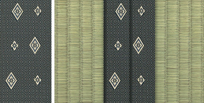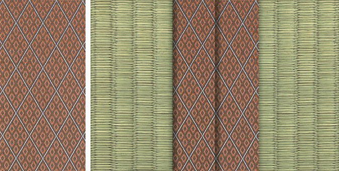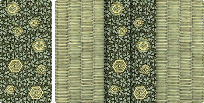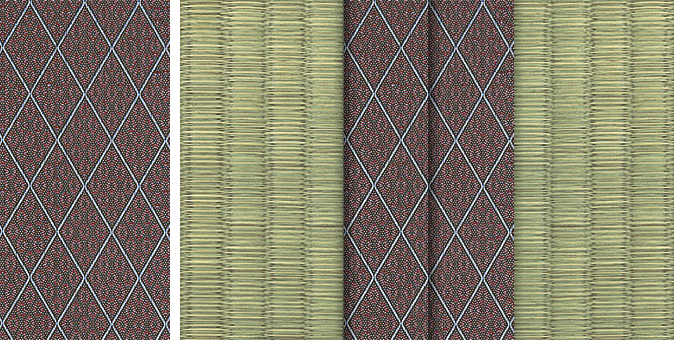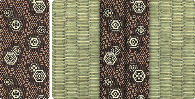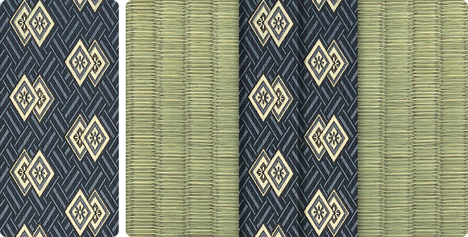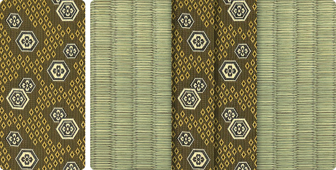 松皮菱、亀甲、流水など和の伝統柄をモチーフに、オリエンタルな雰囲気を香らせる独特なタッチに仕上げられた畳縁です。