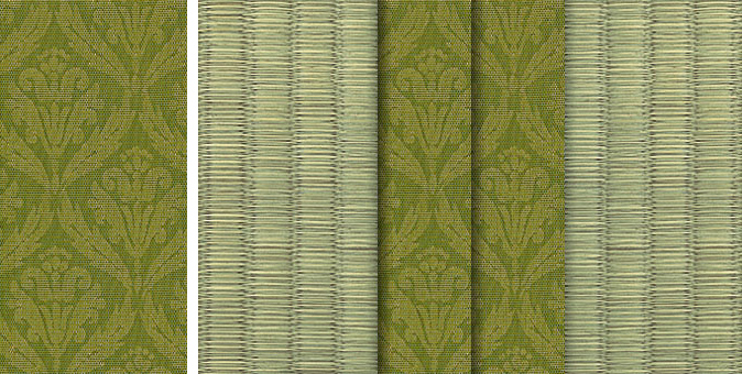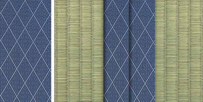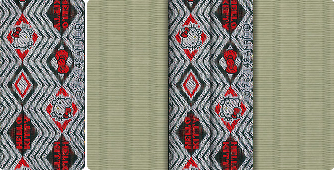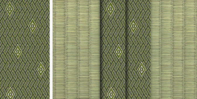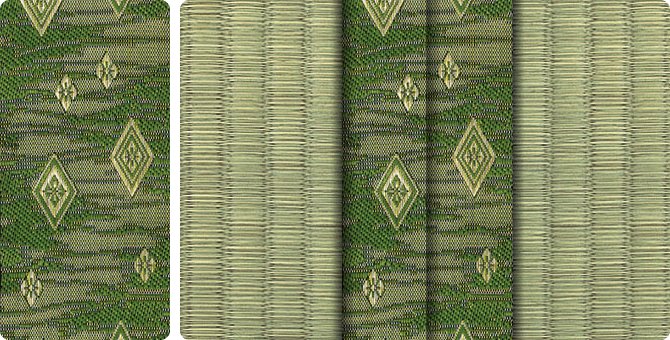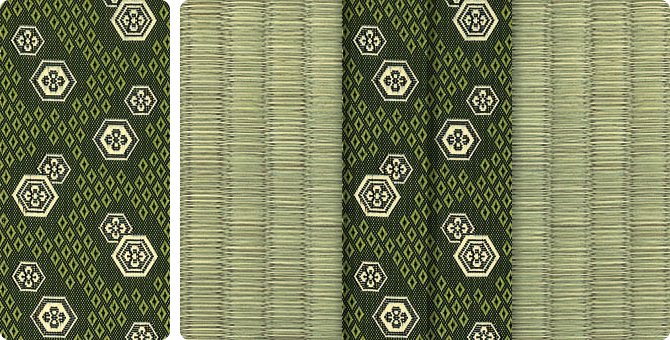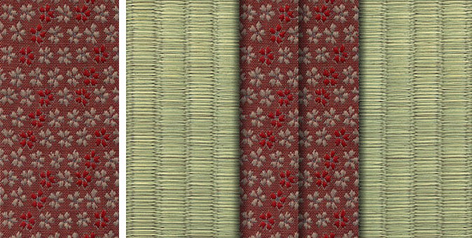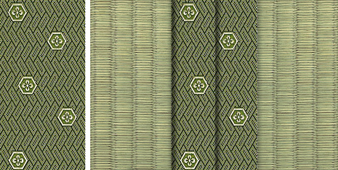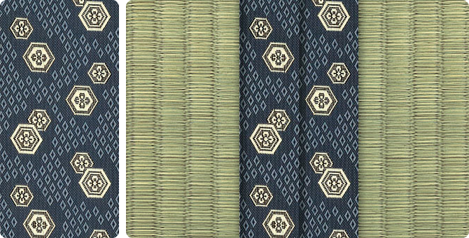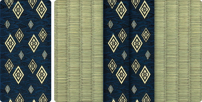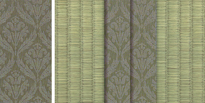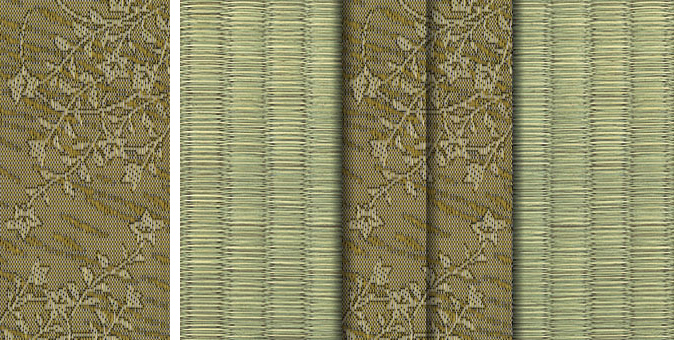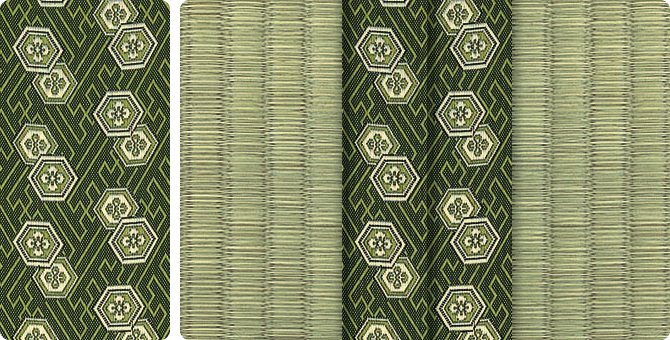 松皮菱、亀甲、流水など和の伝統柄をモチーフに、オリエンタルな雰囲気を香らせる独特なタッチに仕上げられた畳縁です。