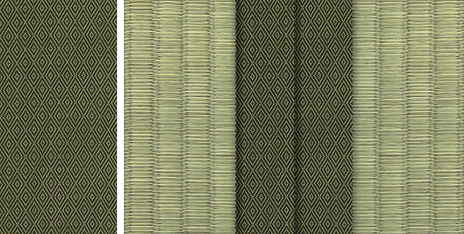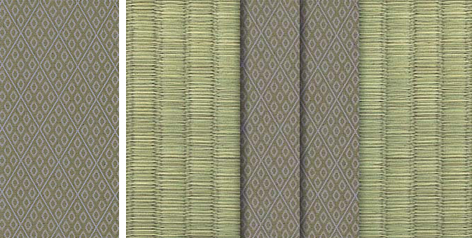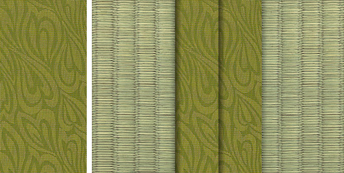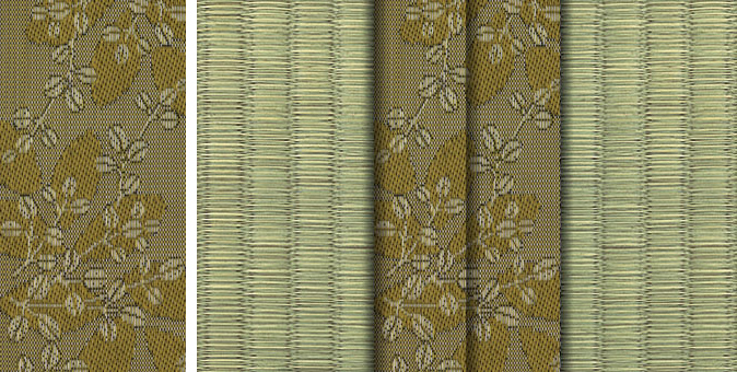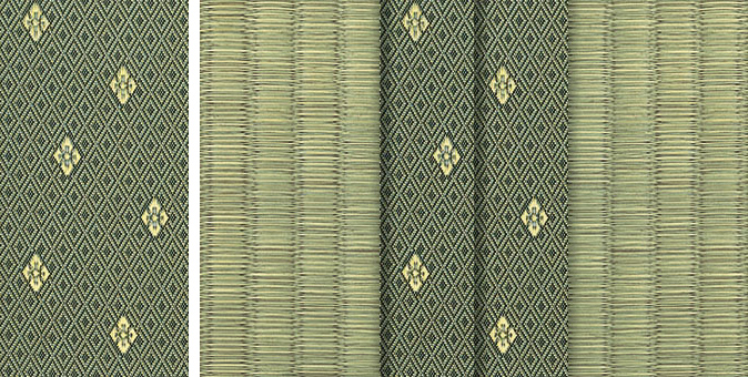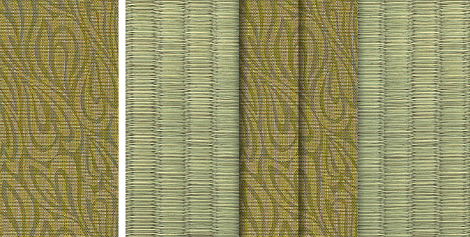 水面に陽の光がきらきらと揺れているような輝きをイメージさせるユニークな地模様が畳をぱっと明るい印象に。アラベスクシリーズの中でも根強い人気を誇る商品です。