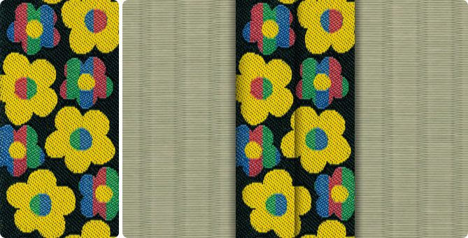 ひときわ目を引くポップな花柄の畳縁で、お部屋もパッと明るくなります。ティーンのお子さまの子供部屋に、お子さまが生まれて新築やリフォームをお考えの若いご夫婦に。元気の出る色目の畳縁の上で、お子さまたちと目一杯遊んでくださいね。