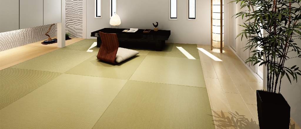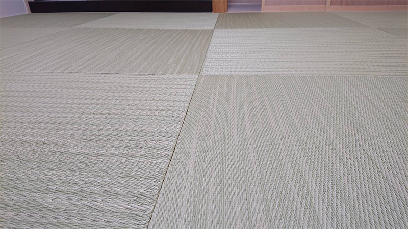 機械すき和紙をこよりにして、樹脂コーティング加工された「健やかくん」なら撥水性に優れ、万一飲み物をこぼした場合でも、拭くだけでキレイになります。イ草に比べて、ダニ・カビの心配、色あせも少なくメンテナンスも簡単です。床暖房にも対応しています。