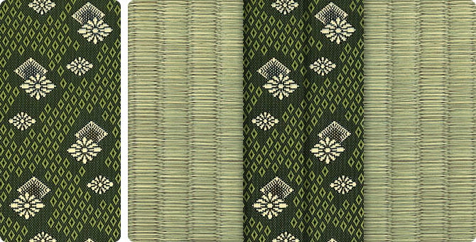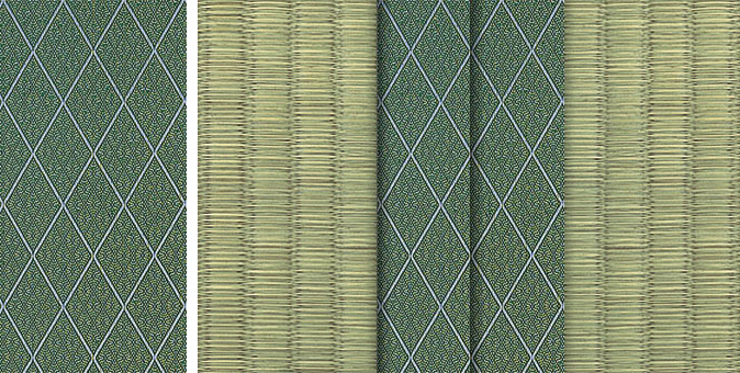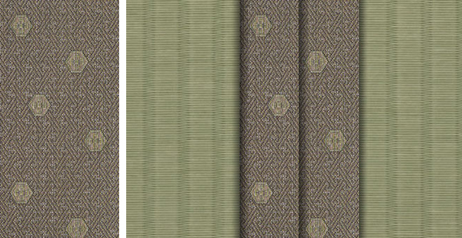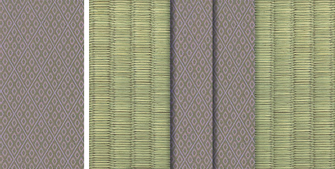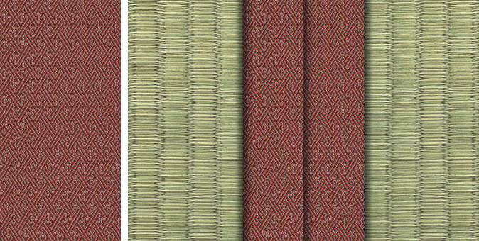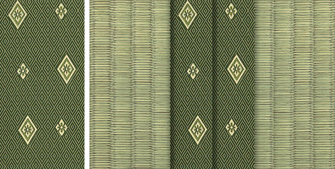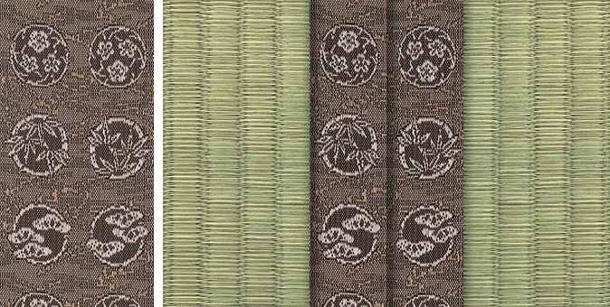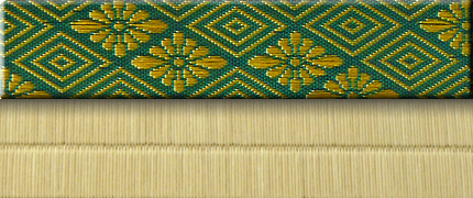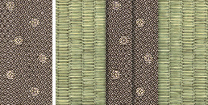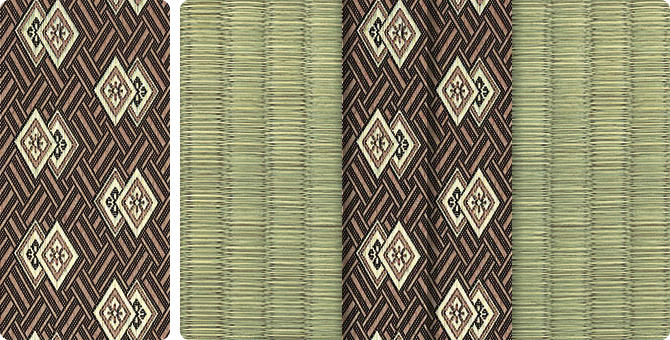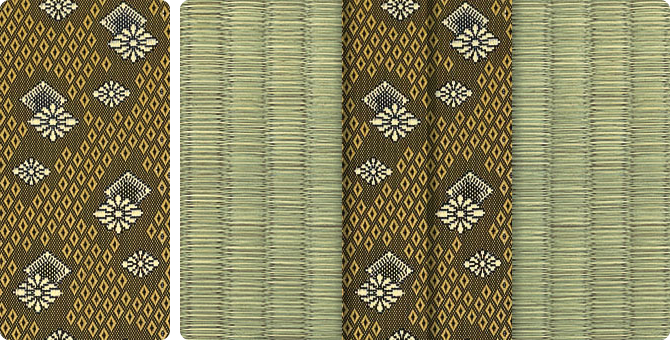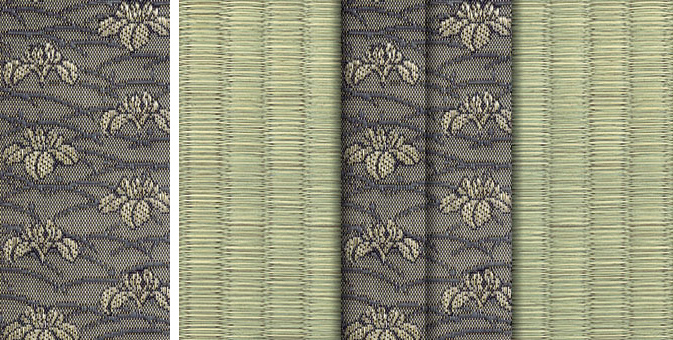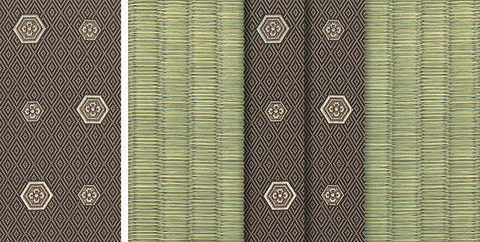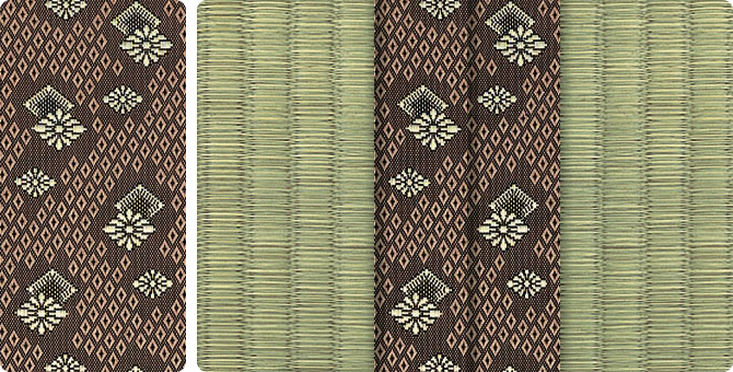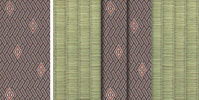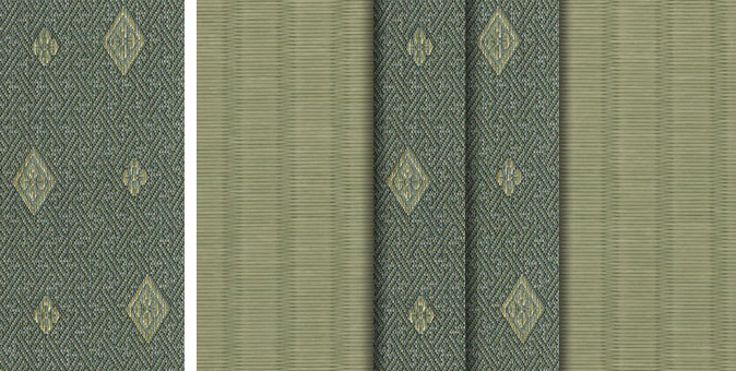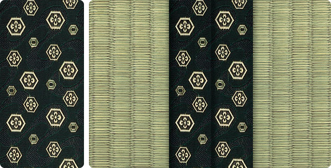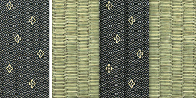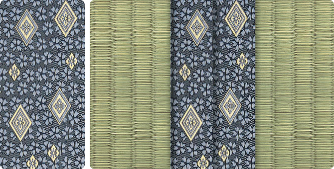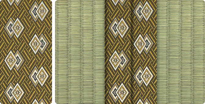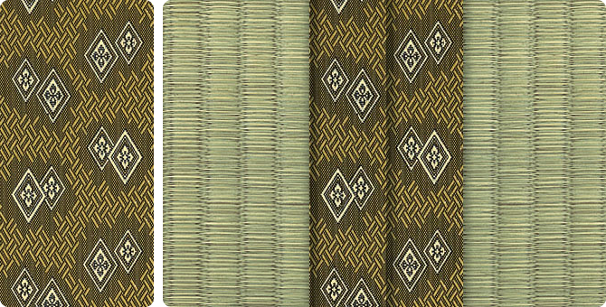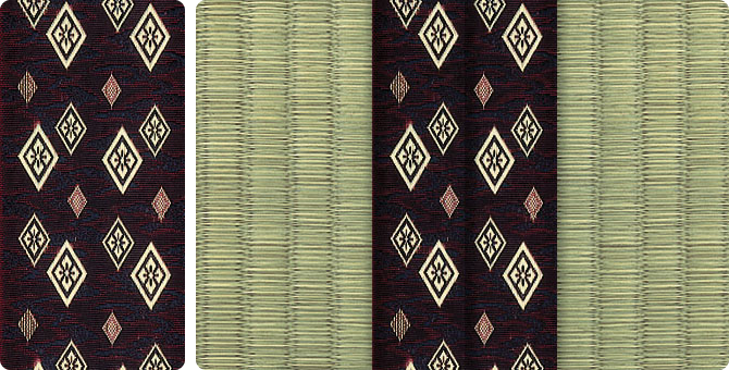 松皮菱、亀甲、流水など和の伝統柄をモチーフに、オリエンタルな雰囲気を香らせる独特なタッチに仕上げられた畳縁です。