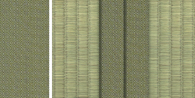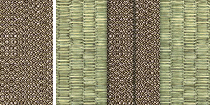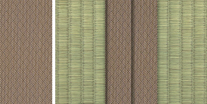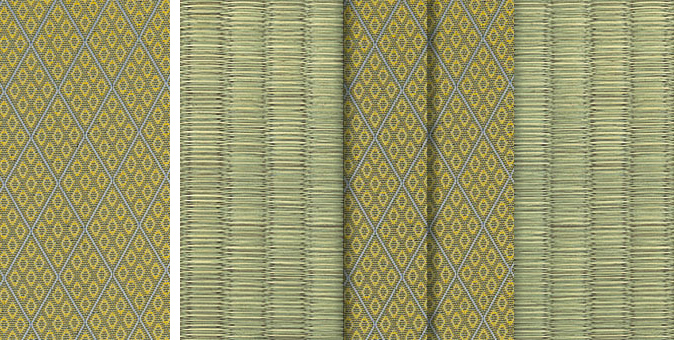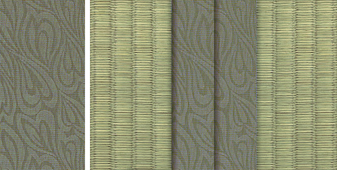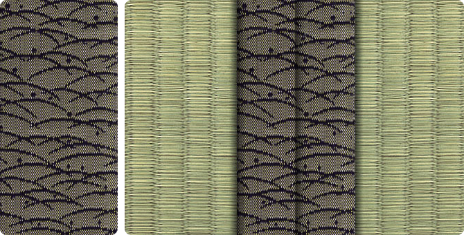 水面に陽の光がきらきらと揺れているような輝きをイメージさせるユニークな地模様が畳をぱっと明るい印象に。アラベスクシリーズの中でも根強い人気を誇る商品です。