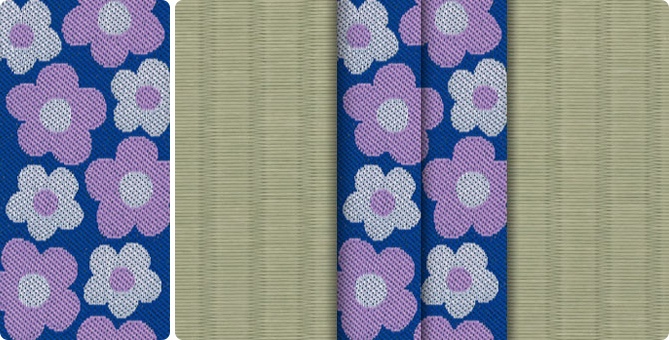 ひときわ目を引くポップな花柄の畳縁で、お部屋もパッと明るくなります。ティーンのお子さまの子供部屋に、お子さまが生まれて新築やリフォームをお考えの若いご夫婦に。元気の出る色目の畳縁の上で、お子さまたちと目一杯遊んでくださいね。