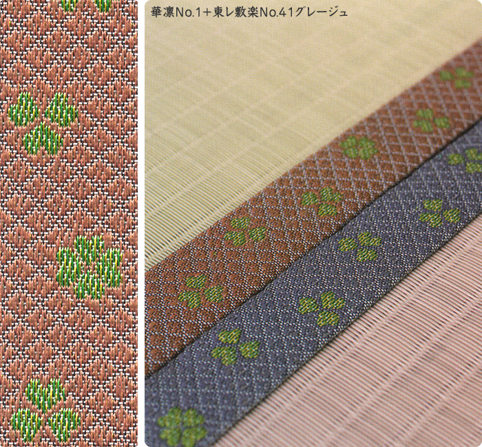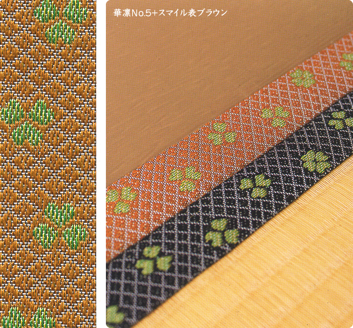畳へりの種類は約200種あり、オリジナルの四つ葉のデザインをはじめ、純和風から洋風なものまで揃っています。