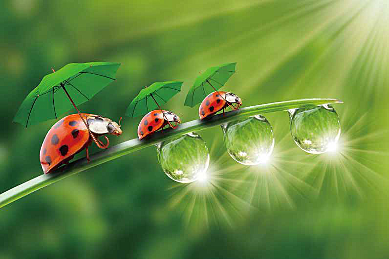 天然のイ草で織られた畳表の上で、水の玉が撥ねて転がります。